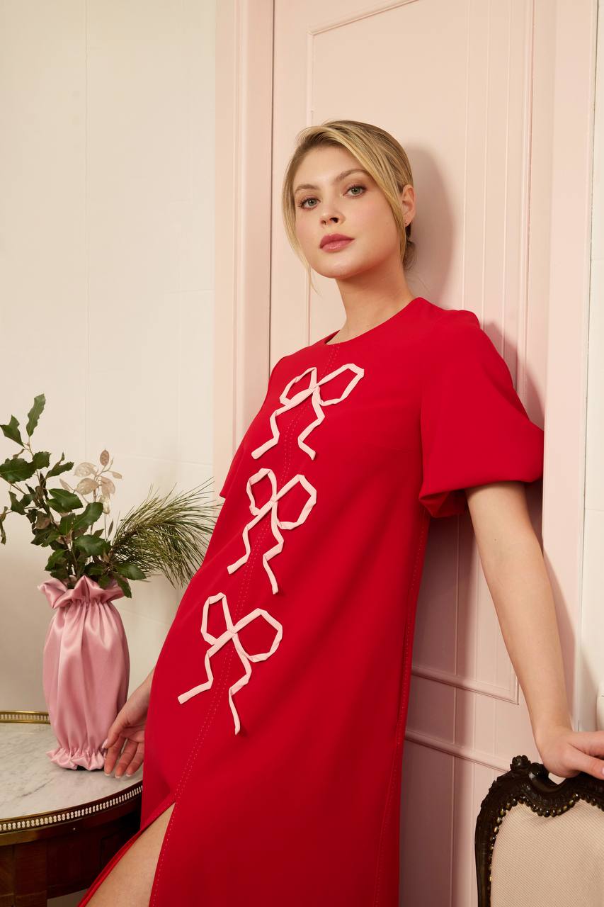 Decorative ivory bow details on the front